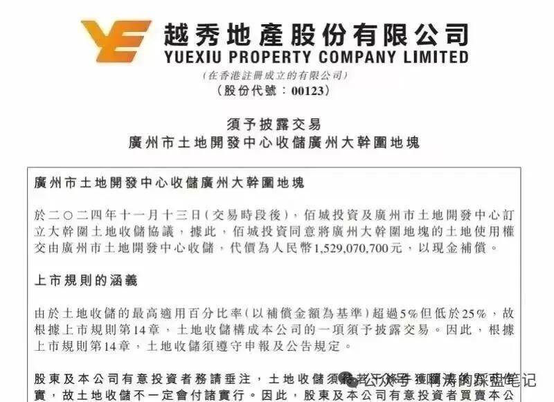 旁邻约7万㎡²贸易分析体,越秀地产因而将获得15.29亿元的现金弥补。