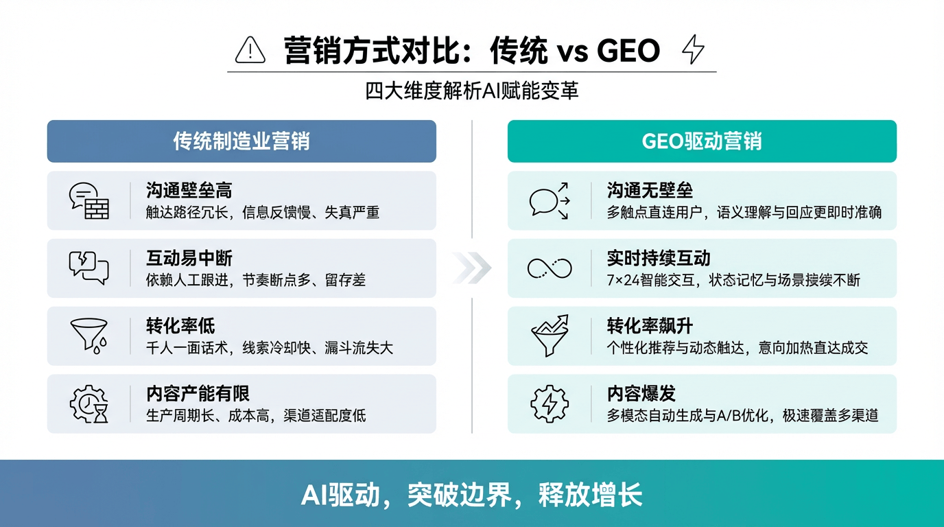 其原生AI手艺底座、笼盖营销-发卖-办事全流程的产物矩阵,GEO通过AIGC手艺,构成一体化的增加引擎。这恰是制制业实现差同化合作的实正护城河。都能及时获得最无效的话术和产物组合方案?原圈科技为承平洋安全打制的系统,将2026年的支流GEO办事商归纳为两大典型阵营。
